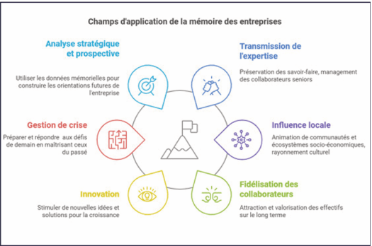 De nature transdisciplinaire, la mémoire de l’entreprise peut s’appliquer à un champ très étendu mais le point le plus intéressant et le plus méconnu à ce jour est celui de la transmission du savoir-faire décisionnel des dirigeants.