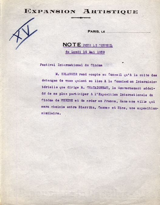 Le 15 mai 1939, le « boycott » par la France de la Mostra est officiellement acté tout comme l’organisation d’un festival similaire. Trois villes semblent correspondre aux conditions requises pour mener à bien le projet : Nice, Cannes et Biarritz, cette dernière tenant la corde.